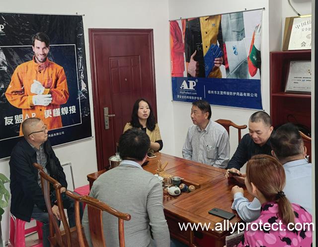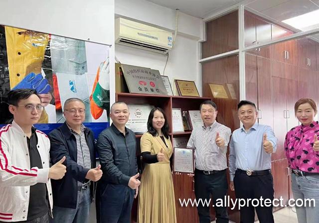 2022年34日,廣東省安全生產(chǎn)協(xié)會勞動防護分會會長李聲譽、秘書長祝平、副秘書長杜玉霜一行到達副會長單位——梧州市友盟焊接防護用品有限公司,受到了友盟總監(jiān)鄒暖春及公司各區(qū)域負責人的熱情接待。