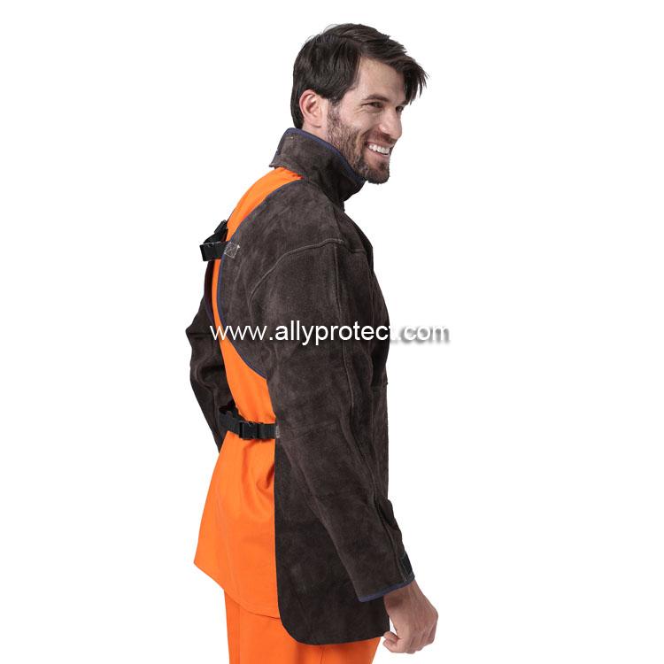 - 產(chǎn)品描述: [ AP ]炭啡色牛二層芯皮全皮護(hù)胸立領(lǐng)長(zhǎng)袖圍裙,適于在炎熱氣溫或室內(nèi)焊接使用,背部透氣,不會(huì)感覺(jué)太炎熱。