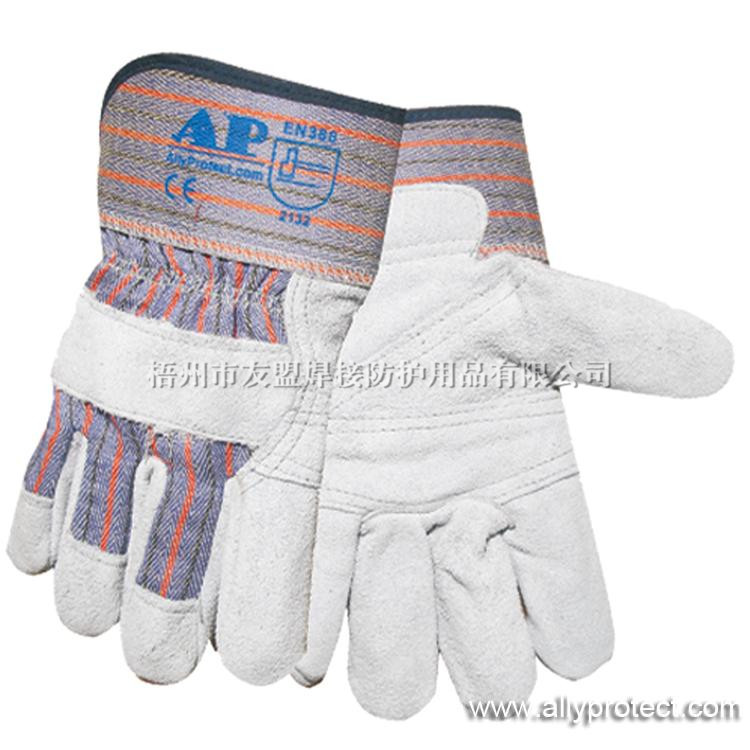 該款手套掌位部分采用耐磨、抗穿插的原色牛二層皮制成,質(zhì)地厚實(shí)且柔軟舒適,抗穿插及內(nèi)磨程度均勻;