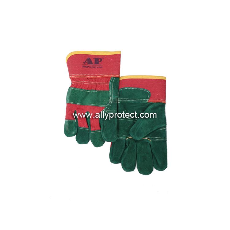 該款手套手掌部分采用耐磨、抗穿刺的牛二層皮制成質(zhì)地厚實(shí)且柔軟,抗穿刺及耐磨程度均勻;
